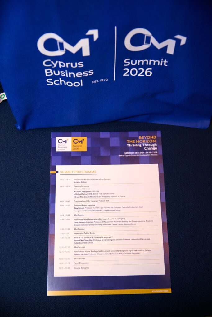 The CIM Summit 2026 is a reference point in the field of Business in Cyprus and in Europe. The CIM Summit is organised on an annual basis and aims to provide the opportunity to Cypriot firms to be informed about the latest developments in the areas of Marketing and Management. World-renowned academics from Europe’s leading Business Schools attend and share their knowledge with attendees representing the leading companies of Cyprus and Europe.